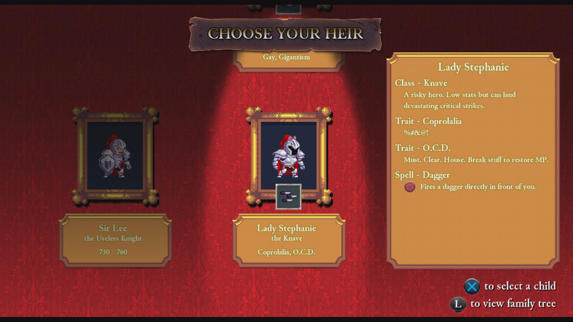 Rogue Legacy is a genealogical rogue-"LITE" where anyone can be a hero. Each time you die, your child will succeed you. Every child is unique. One child might be colorblind, another might have vertigo-- they could even be a dwarf. That's OK, because no one is perfect, and you don't have to be perfect to win this game. But you do have to be pretty darn good because this game is HARD. Fortunately, every time you die all the gold you've collected can be used to upgrade you manor, giving your next child a step up in life and another chance at vanquishing evil.