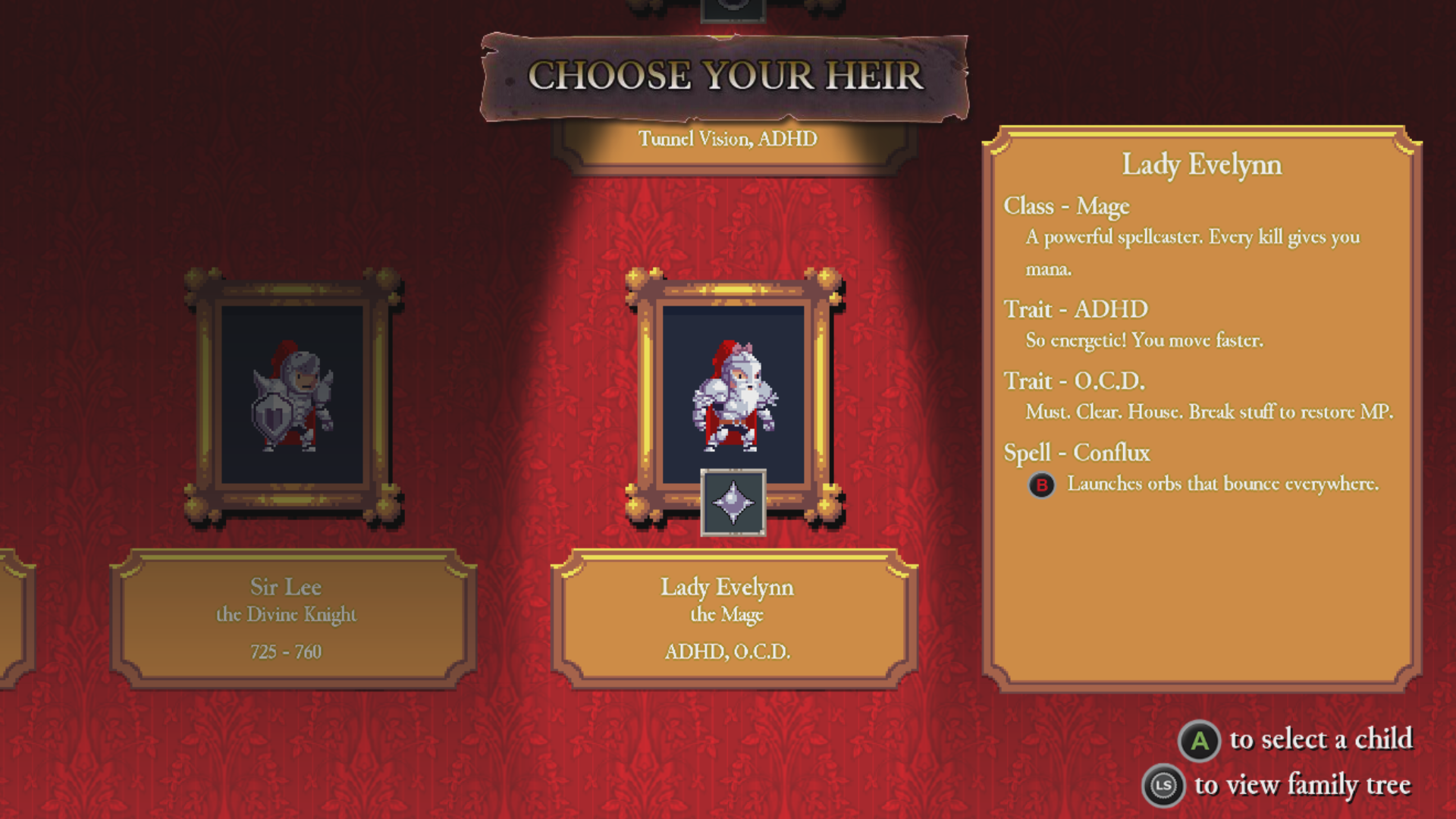Rogue Legacy is a genealogical rogue-"LITE" where anyone can be a hero. Each time you die, your child will succeed you. Every child is unique. One child might be colorblind, another might have vertigo-- they could even be a dwarf. That's OK, because no one is perfect, and you don't have to be perfect to win this game. But you do have to be pretty darn good because this game is HARD. Fortunately, every time you die all the gold you've collected can be used to upgrade you manor, giving your next child a step up in life and another chance at vanquishing evil.